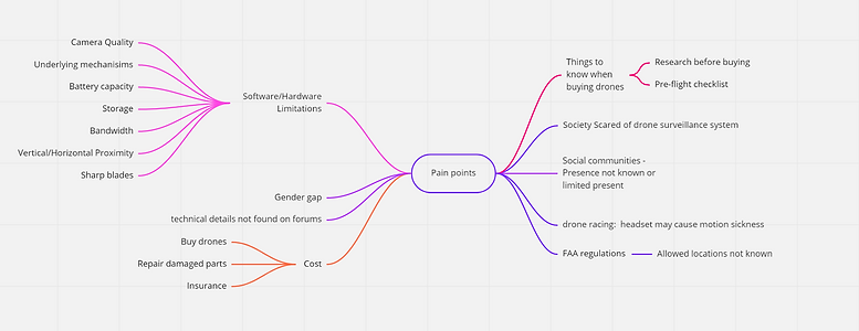 Figure 1: Mind Map (Pain point, community experience and interaction with flying drones)